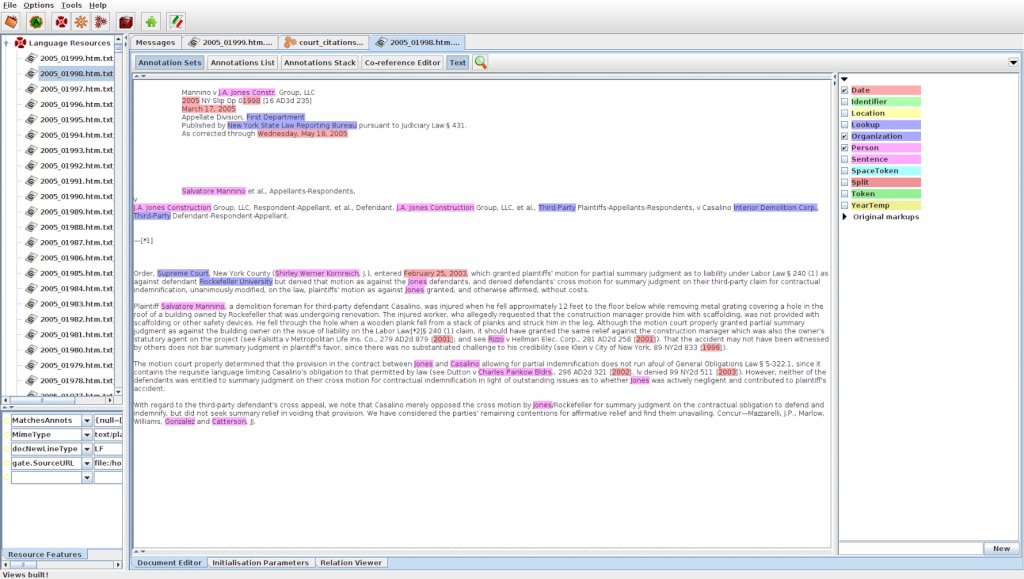 Screenshot van de open-source FreeEed e-discovery software met weergave van entity recognition.