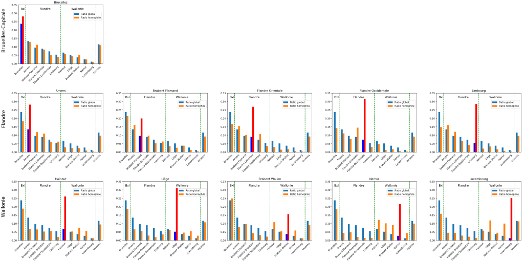 - En dehors de Bruxelles, le voisinage d’une province reste majoritairement dans la même région (Flandre ou Wallonie)