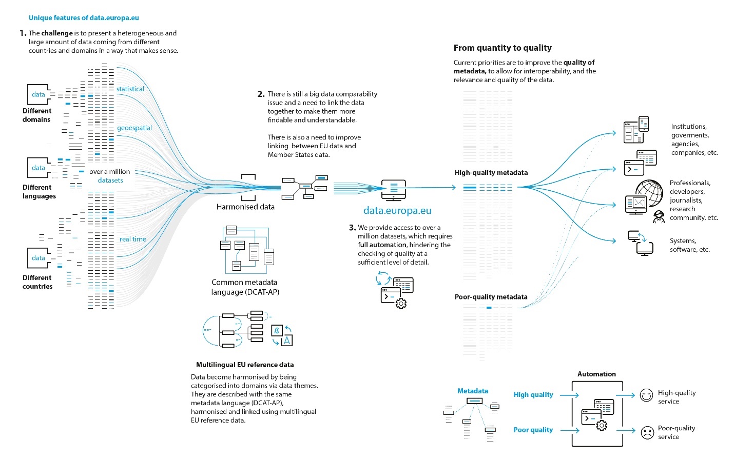 Le but de cette règlementation est de favoriser la recherche tout en diffusant ces données dans un contexte sécurisé, dans la ligne des travaux de Kristof Verslype sur la Pseudonymisation. Pour atteindre cet objectif, chaque État membre de l’UE est tenu de mettre en place un point d’information unique censé relayer les informations concernant les données gérées par les autorités publiques vers un registre européen commun (ERPD) et ainsi faciliter leur réutilisation.