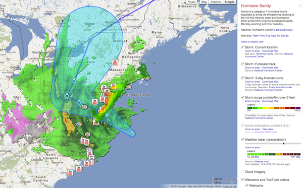 Ainsi l’application de suivi de l’ouragan Sandy survenu aux USA en 2012, incluant des données publiques météorologiques mais aussi les constatations des citoyens et des propositions d’aide bénévole, constitue un exemple remarquable dans ce sens.
