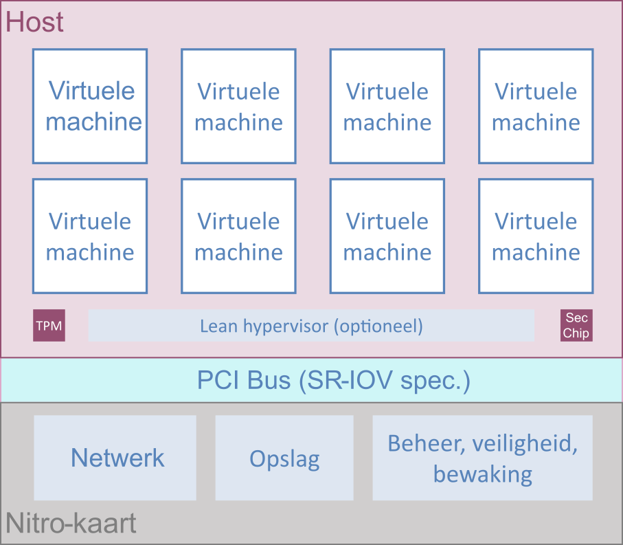 - Nitro-hypervisor – Een geminimaliseerde, firmwareachtige hypervisor ontworpen om resource- en performance-isolatie te bieden.